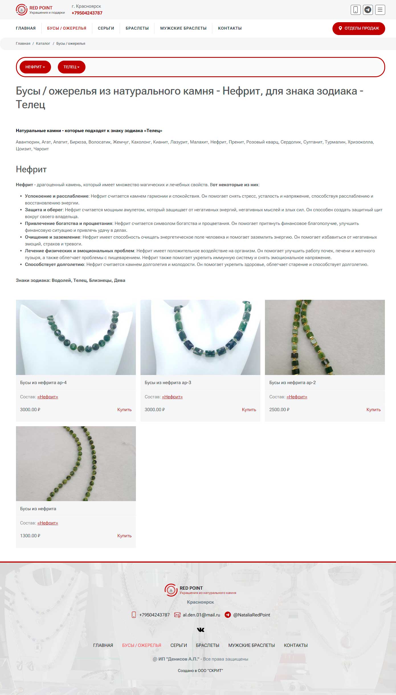 Каталог украшений с быстрым выбором по виду натуральных камней и так же знаку зодиака